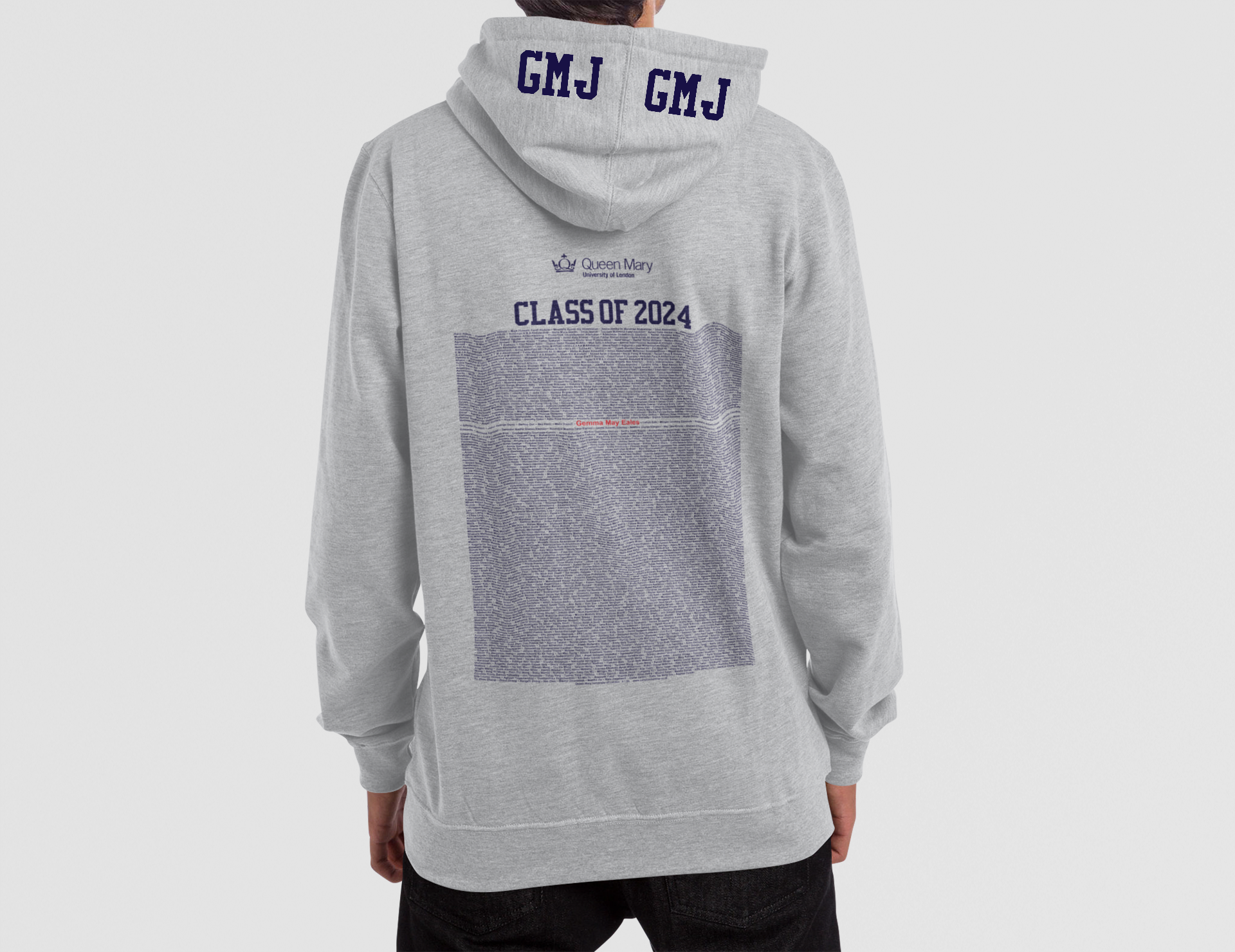 The hood print will be matched to the colour of the artwork printed on the back of your hoodie.